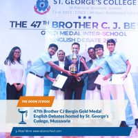 The Doon School team comprising Arjun Mitra, Krtin Goel, and Vivaan Sood secured a First position at the 47th Brother CJ Bergin Gold Medal English Debates hosted by St. George’s College, Mussoorie.