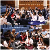 Mr Vineet Panchhi spoke to them about everyday heroism and regaled them with poetry, as well. A session with IAS officer, Dr. Sanjeev Chopra followed next, in which he responded to a variety of questions ranging from the challenges of leadership, humility in service, peer pressure and communication skills.