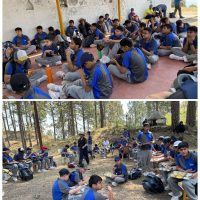 Upon arrival, the students engaged in team-building activities, breaking the ice and forming lasting connections. The following day, they set off on a scenic 7-8 km trek to the ancient Shiva temple at Ghantakaran, surrounded by pine forests and serene landscapes. The adventure continued with a wilderness survival skills workshop, where they learned essential outdoor techniques like shelter building and first aid.