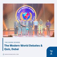 The Doon School Quiz & Debate Team participated in The Modern World Debates and Quiz held at Gems Modern Academy, Dubai, competing against 16 schools from UAE and India. Aakash Mishra and Avighna Daruka formed a formidable Quiz Team, while Zubin Dhar, Vivaan Sood, and Avi Bansode comprised the skilled Debate Team.